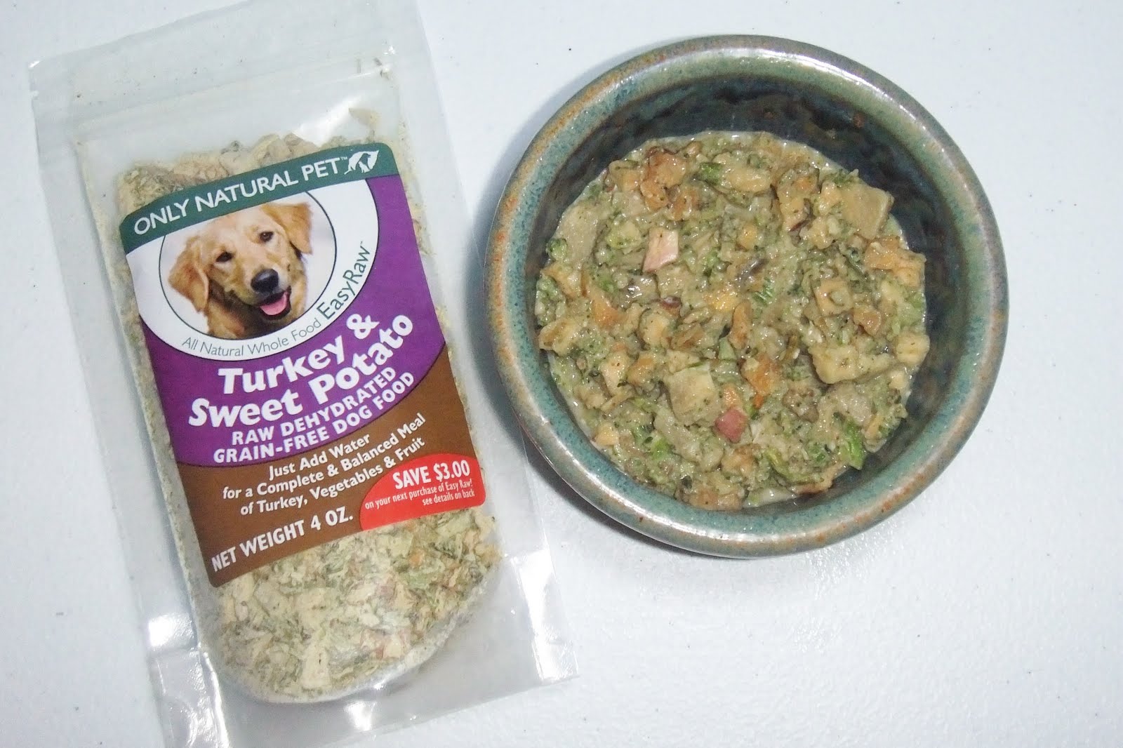 EasyRaw dehydrated grain free dog food is made with human-grade hormone-free, antibiotic-free USDA Inspected Turkey or USDA Inspected Beef, fruits and vegetables. There are no preservatives, fillers, artificial colors, by products, additives, synthetic vitamins & minerals. As if that isn't enough its high protein content & nutrient density makes it great for weight management,. If you know Kirby then you know he loves to eat and can get get borderline chunky.