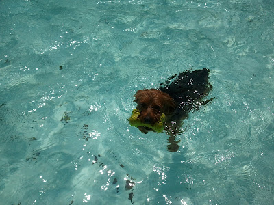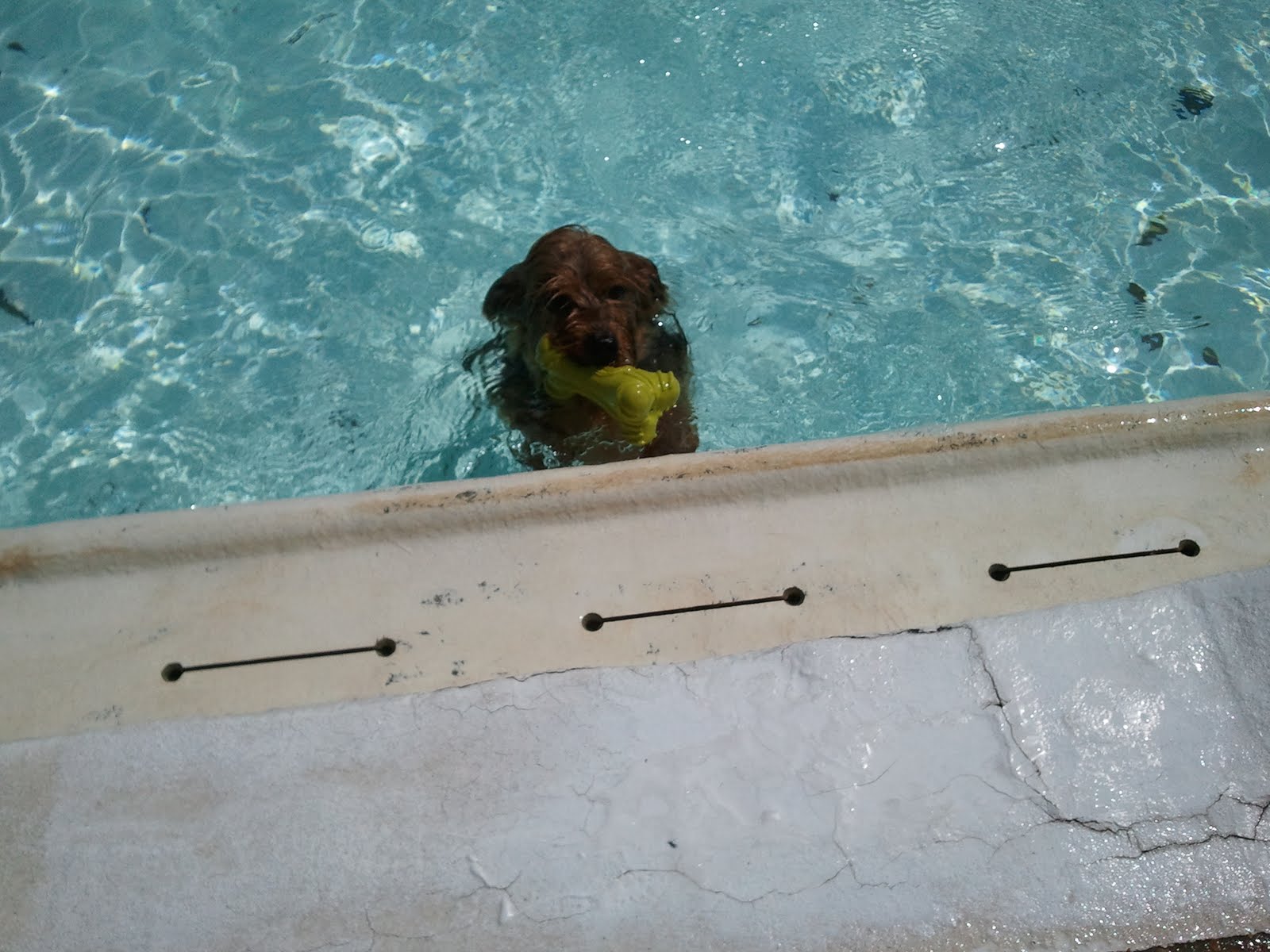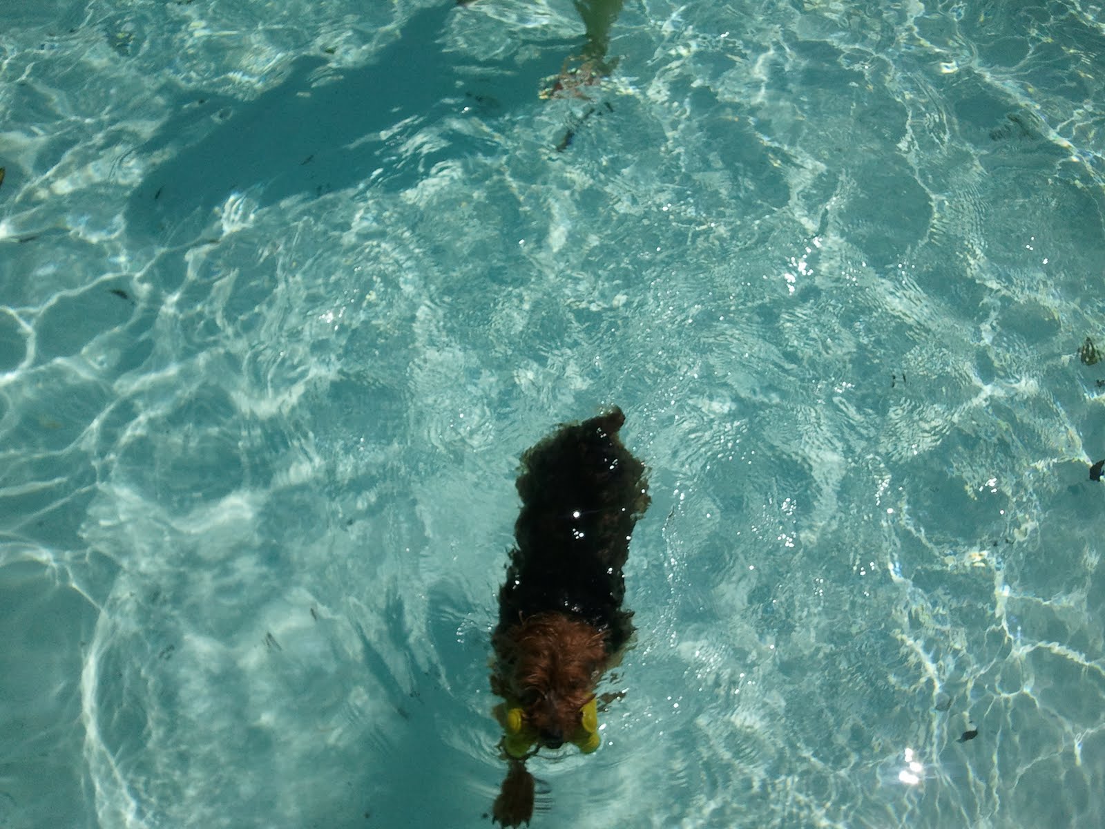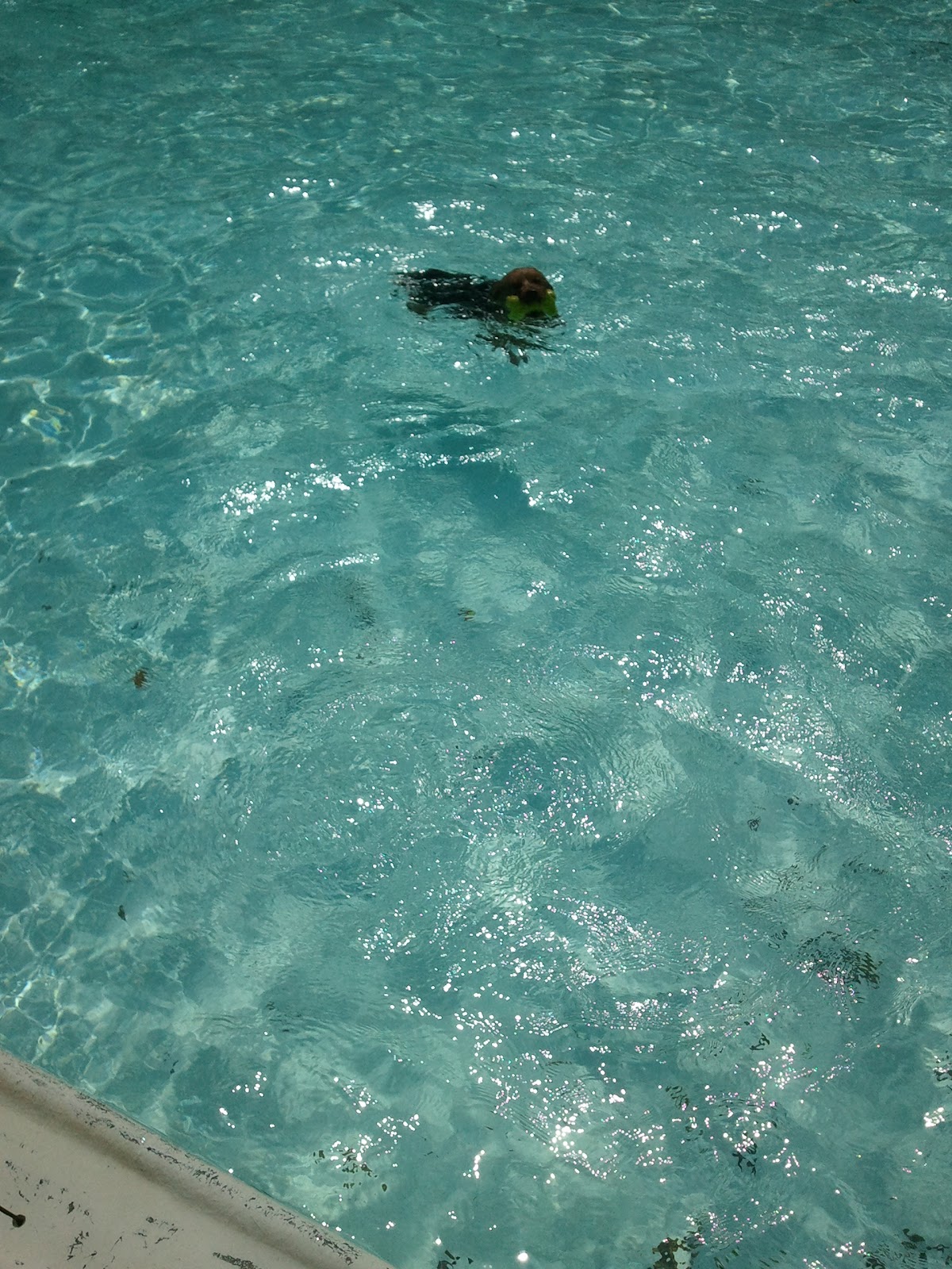 Kirby was in his element! He loves the cool water and takes to it like a duck. He jumped and swam nearly the full two hours. I'm not sure he was hugely popular with the other dogs, but his toy definitely was. Some dogs would run up and snatch it right out of his mouth then take off. Other dogs would try to retrieve it from the pool. Owners were great about getting it right back to us.