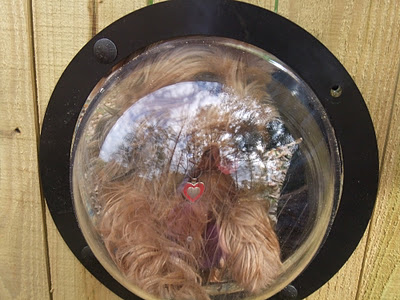 /If you have been following our blog then you know we just finished building a wonderful fence in our backyard so Kirby can run and play in a safe environment. Chatting on Kirby's FaceBook Page I commented about cutting out a window in the fence and covering it with chicken wire. That's when Angel from Life with Lulu told me about these amazing windows that can be installed in the fence. I thought this was the coolest idea and knew Kirby just had to have one. I did a search online and came across Pet Peek. I contacted Carolin Best, the inventor of Pet Peek, to ask if Kirby and I could review one and she said yes!