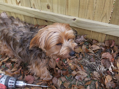 Kirby did succeed in scratching the window but it still works because he can safely look out. In retrospect we should have left the protective film on until it was completely installed since Kirby was scratching the window because I was outside the fence taking pictures.
