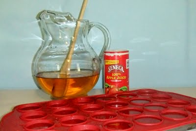 OK, so I don't really go to this much trouble or make this many at one time - it's a photo op! What I really do is pour some prepared juice in little 3 oz. plastic cups I get at the Dollar Store (50 for a $1.00), pop them in the freezer, and voila! Kirby really doesn't care how I make them as long as I make them.