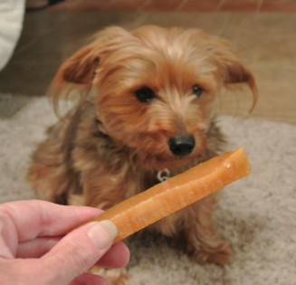 /I’ve been reading reviews about these Himalayan Dog Chews for months now. I didn’t want to spend $$ for something Kirby wouldn’t like so I had been waiting for our local co-op to carry them. Believe me when I say Kirby has discriminating taste buds. He loves bully sticks, pig ears, and toobles yet turns his nose up at Greenies, deer antlers, and milk bones.