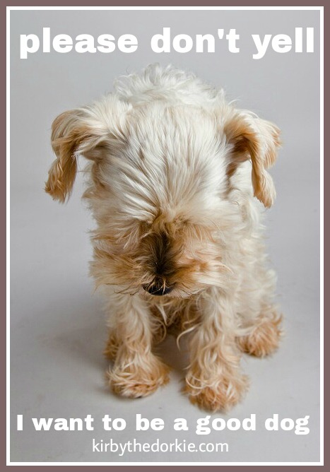 Training a dog does not require yelling, hitting, or any other form of bullying. What it does require is patience, gentle firmness, and a whole lotta love. Dogs want to please so make training a fun game with treats and lot's of "good boy" accolades.