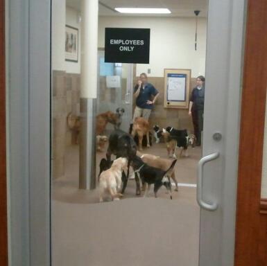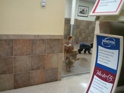Note: I do hate we don’t have any pictures other than the few posted yesterday. Kirby's Summer Camp Weekend We don’t have access to the back areas. There are small windows to view into the atrium and suite areas. However, I have been informed that the hotel plans to install video cameras in all areas so pet parents can view their pets over the internet at any time.