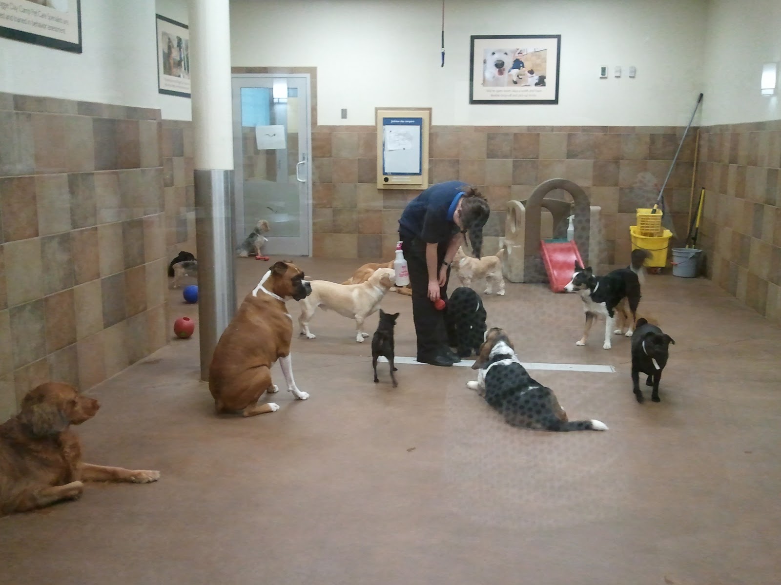 Second, since most dangers, i.e. extreme heat or cold, insect bites, other unsupervised dogs and traffic occur outdoors, all activities take place inside. There is a walking path inside the hotel where dogs are walked at least twice a day with two Relief Rooms where they can be let off the leash in an area that resembles an outdoor park. Whenever a dog is out of its room for a walk or heading to the play areas, they are always on a leash.