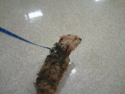 When I picked up Kirby on Sunday he was so very happy to see me. He wasn’t upset, agitated, or trying to get away from there as quickly as possible. When Mary, his trainer, brought him out and showed me his new tricks, Kirby kept running to me jumping at my leg then to her jumping at her leg then back to me. This is his usual way of saying “ok, I really like you but I want to go with Mama now”. His reactions and demeanor told me he did enjoy his weekend getaway.